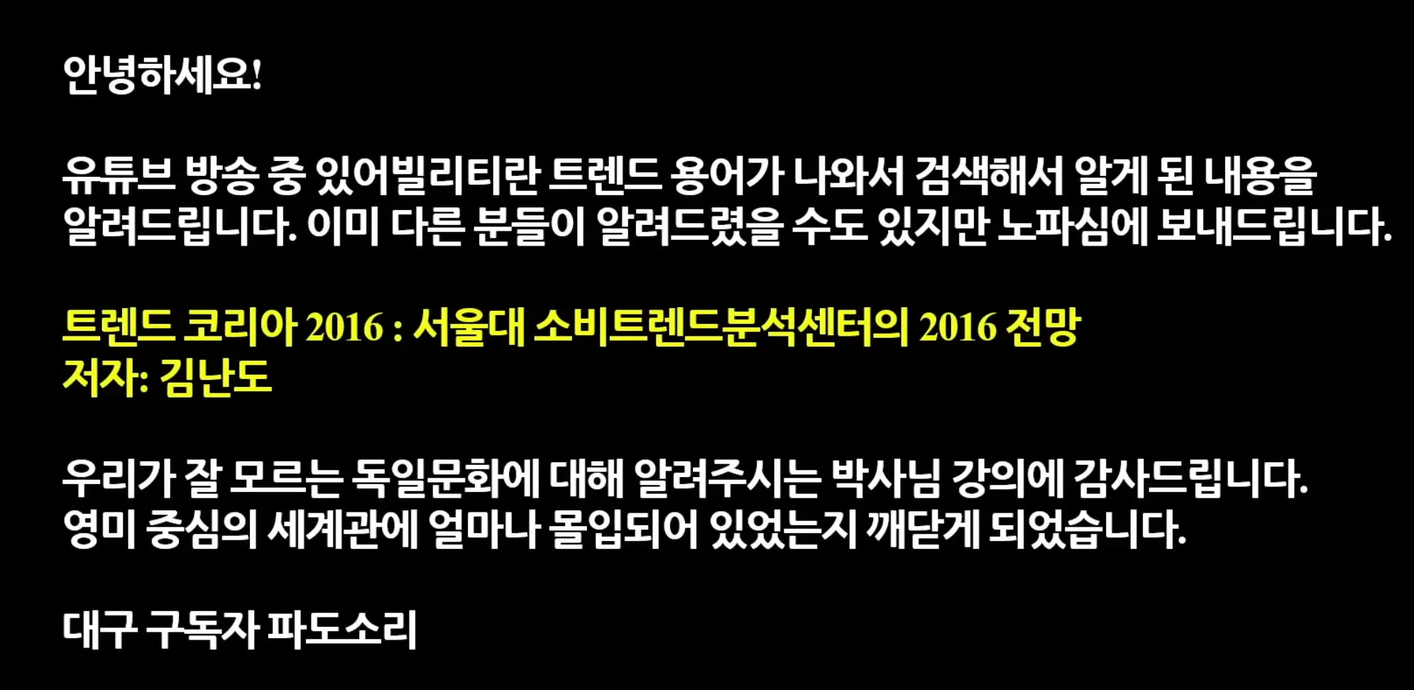 독일 문화에 대해 알려주는 박사님 강의에 감사한다.