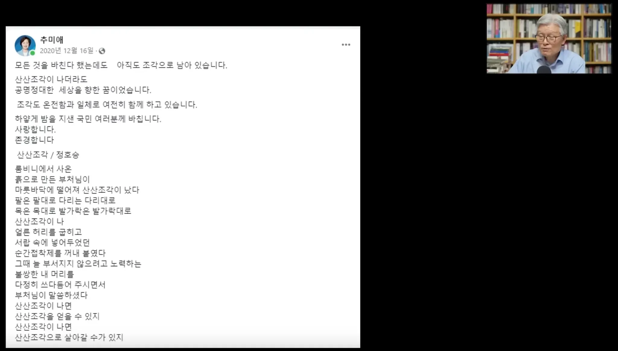 김수영의 시를 보면 추미애 장군이 고독함을 이겨내길 바람