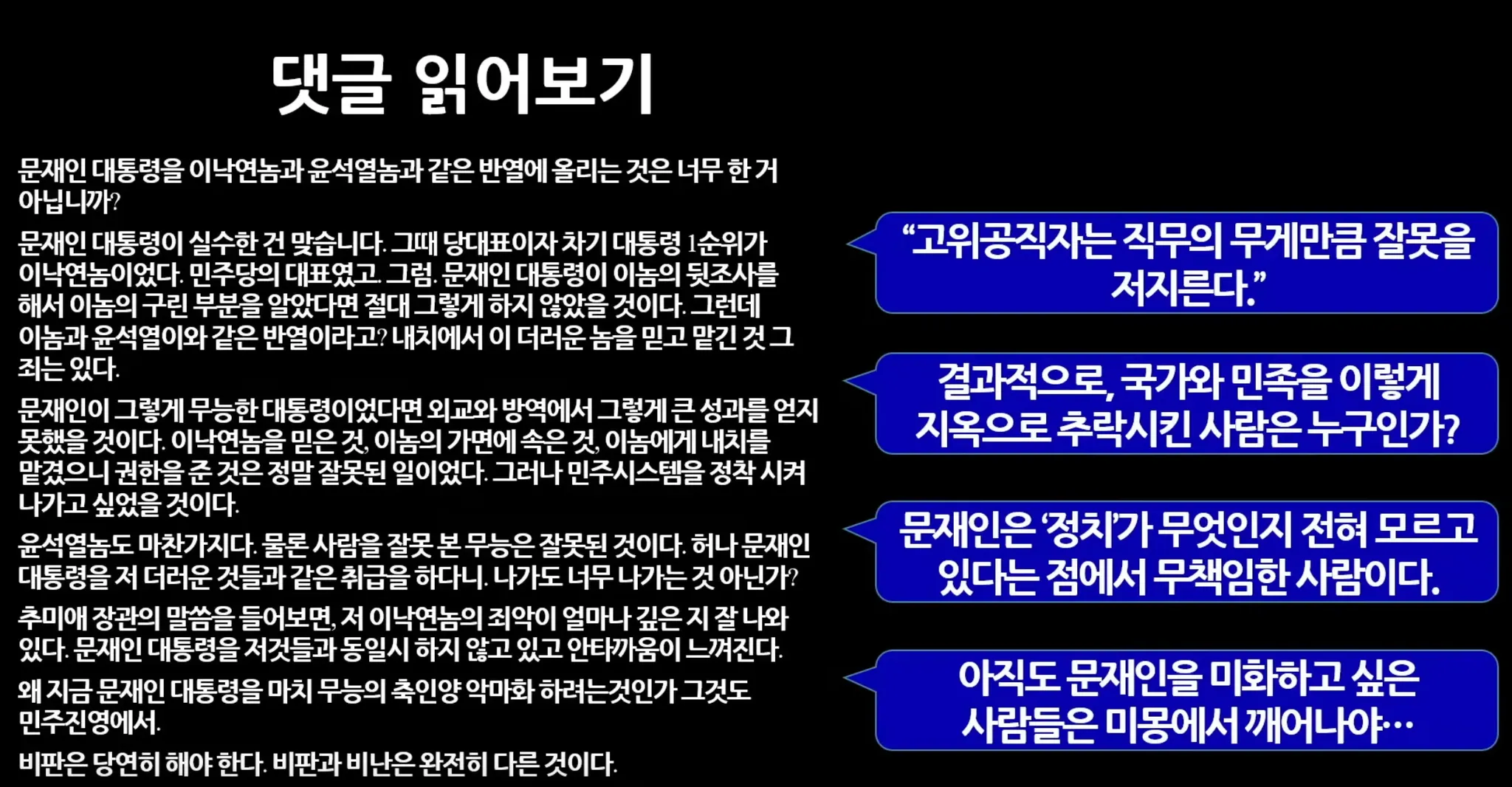 문재인을 이낙연과 윤석열과 같은 반열에 두는 것은 문제가 있다.