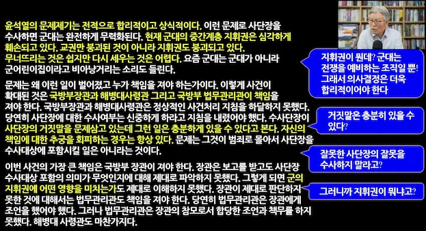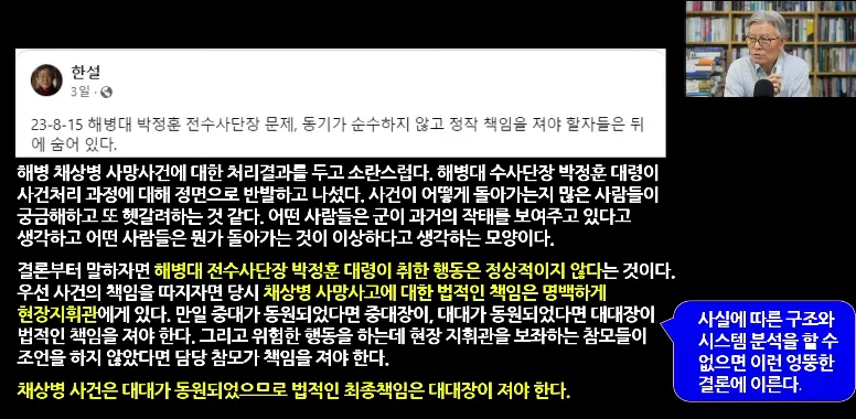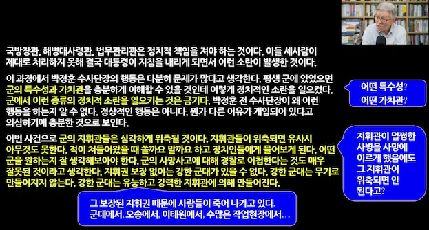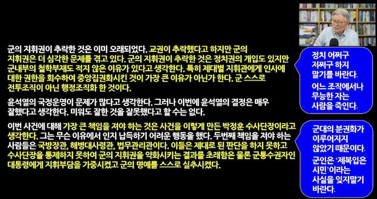 군의 특수성과 가치관에 대한 한설 예비역 장군의 의견