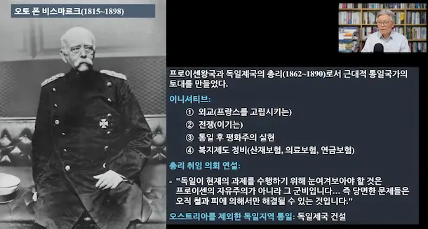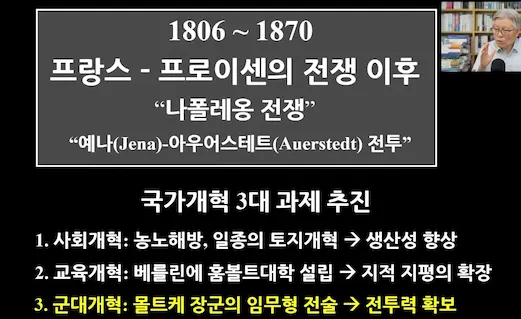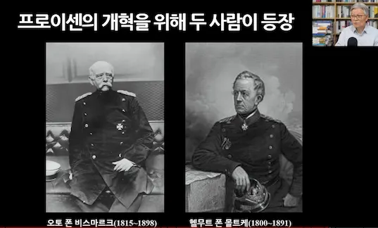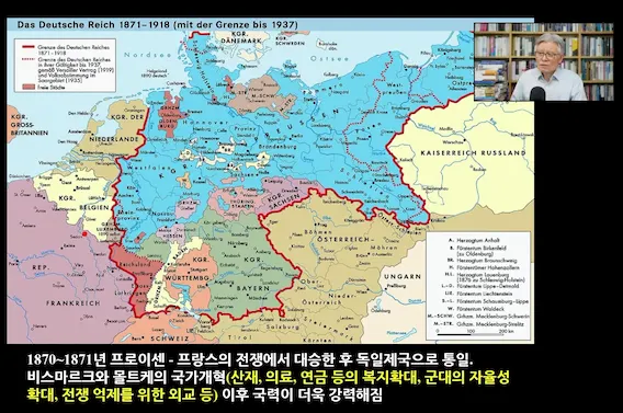 프로이센은 사회 개혁, 농로 해방, 투지 개혁을 통해 발전하였으며, 헬무트 폰 몰트케는 군대 개혁의 핵심 주자였다. 또한, 나폴레옹 3세와의 전투 및 군대 괴멸, 1871년 독일 통일과 대통일 vs 소통일 논쟁, 독일의 통일, 베르사이오 공전의 거울방에서의 독일 제국 선포 등의 주요 주제가 다루어진다.