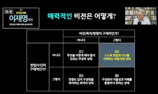비전과 전략의 중요성에 대한 주제에서는 비전의 역할과 임성근의 비전의 부재에 대해 다루고 있다.