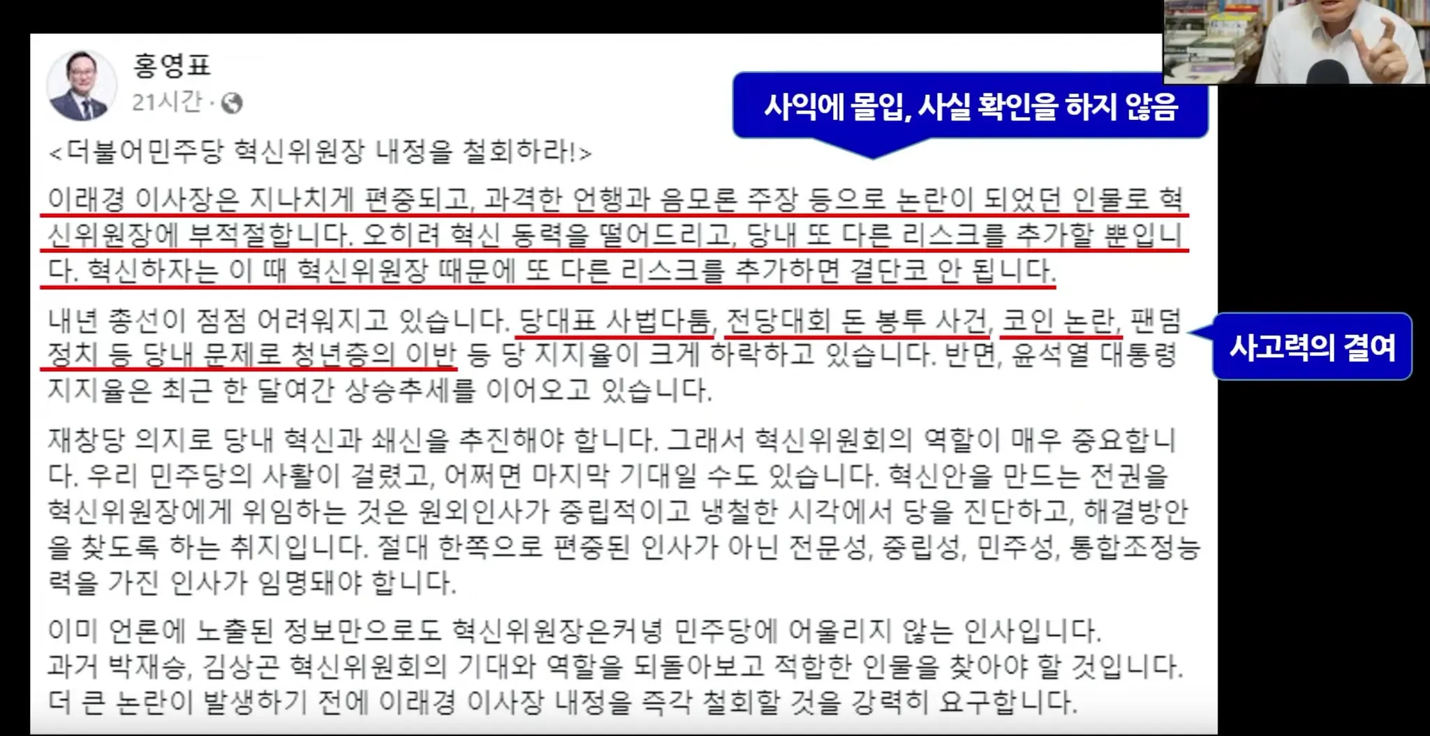 그러니까 이 사람이 문재인 윤석열 김건희 한동훈 이낙연 홍영표 김종민 이상민 송갑석 이런 수박들이 있어빌리티를 계속 추구하면서 그 속에는 딱 깡통이 들어요. 아무것도.