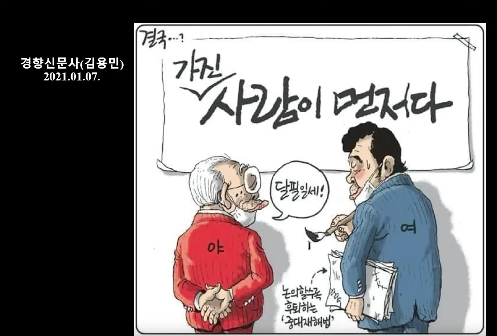 그러니까 경향신문에 김용민 화백이 결국 가진 사람이 먼저다.