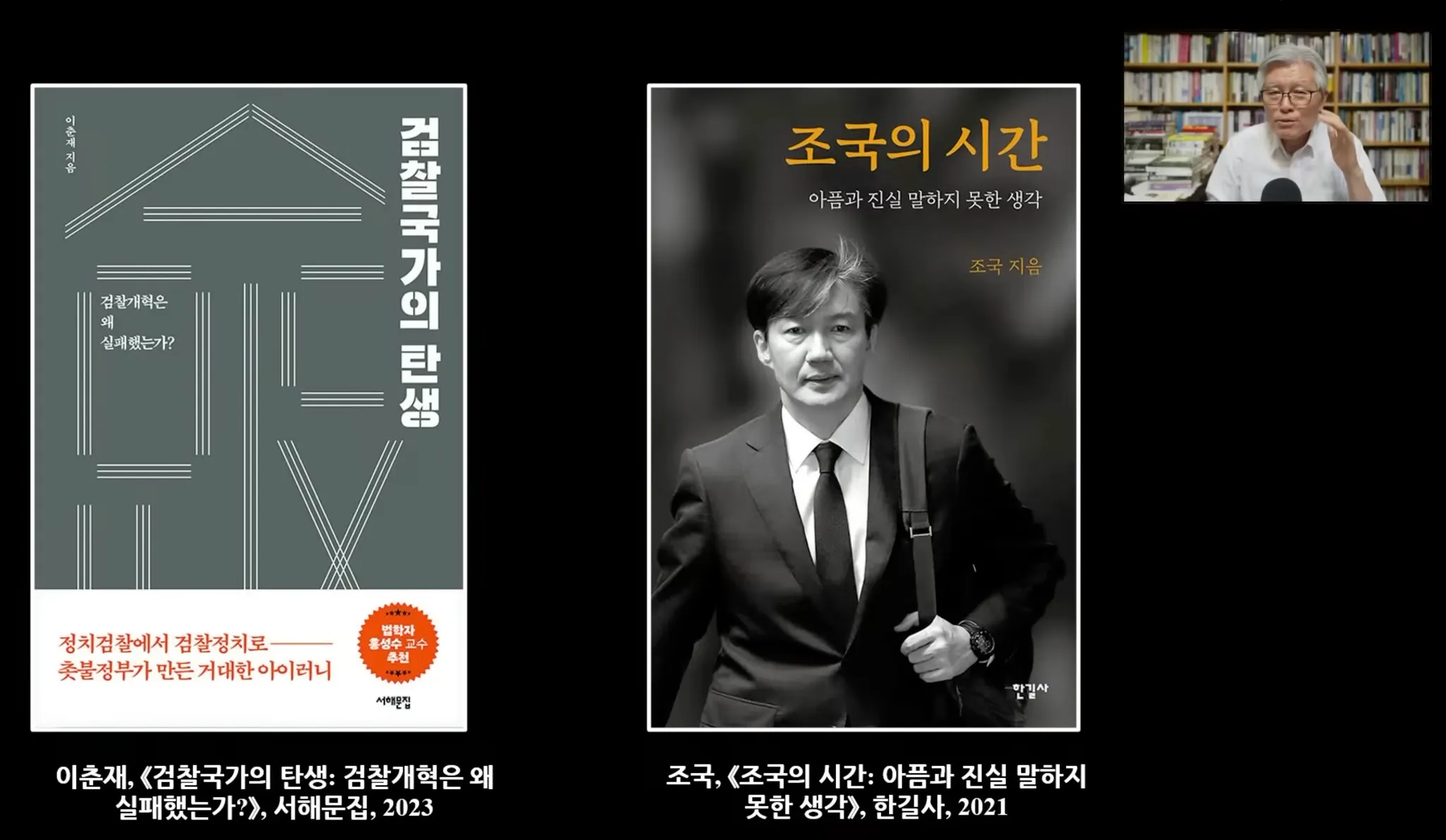 그러니까 태스크포스도 없었던 거지. 검찰 개혁이 어떻게 돼 어떻게 혼자 단기 필마로 가가지고 조국이 검찰을 개혁하냐고 말이 안 되지. 그러니까 문재인은 검찰을 개혁할 의지 자체가 없었다는 게, 이 책 행간을 읽어보면 나와. 검찰 개혁할 안 하겠다는 거야. 그니까 그러니까 추미애도 내 친거지.