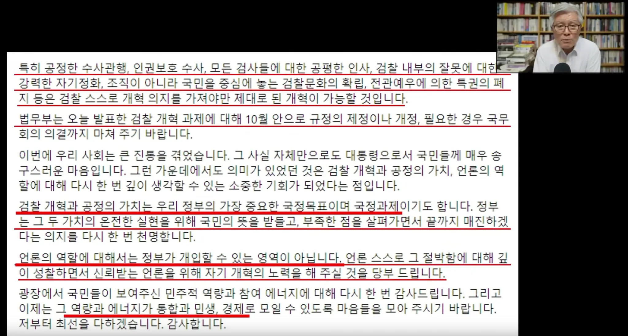 이성윤 검사장 대담 때도 잠깐 나왔던데 제가 이거를 여러분들에게 읽어드리면 문재인이 어떤 생각을 하는 사람인지 명확하게 알 수 있어요.