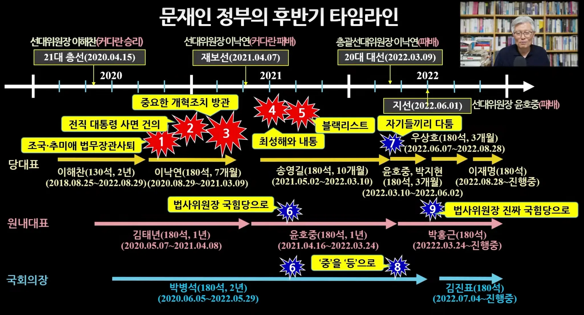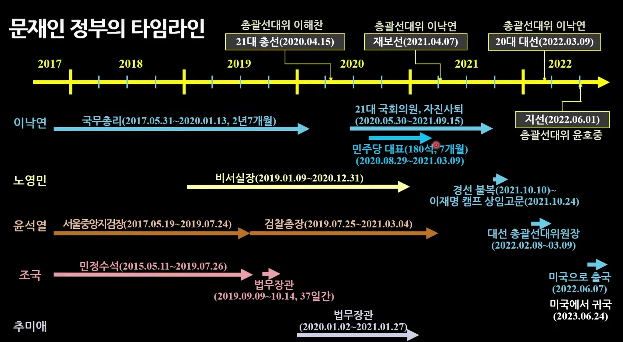 이낙연이 2017년부터 2022년까지의 타임라인을 보여준다.