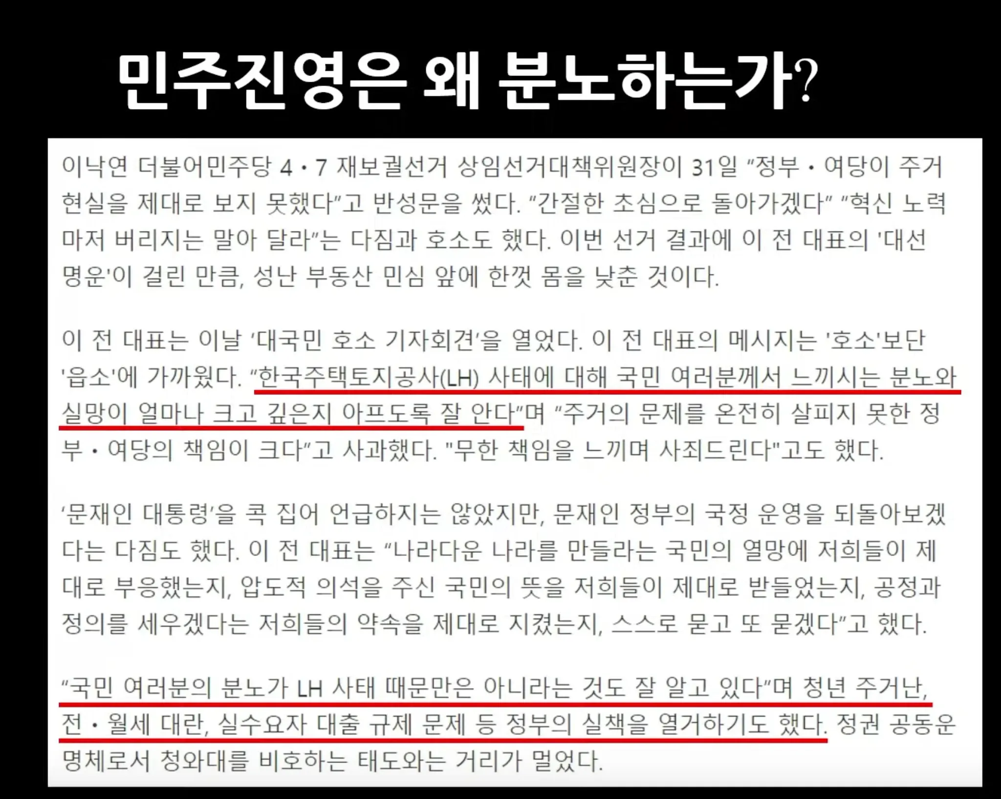 원인은 부동산 정책 실패와 LH 사건 분석 실패- 2020년 총선에서 승리를 거둔 이유를 부동산이나 LH 사건으로 설명할 수 없음