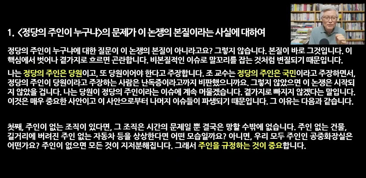주장: 정당의 주인은 본질적인 문제가 아니다.
