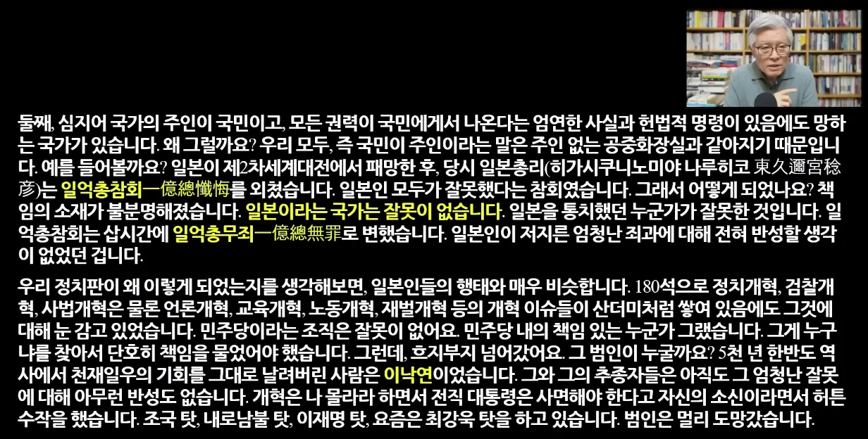 일본을 통치했던 누군가가 잘못한 것이며, 1억 총참회로 일본은 삽시간에 무죄로 변했다.