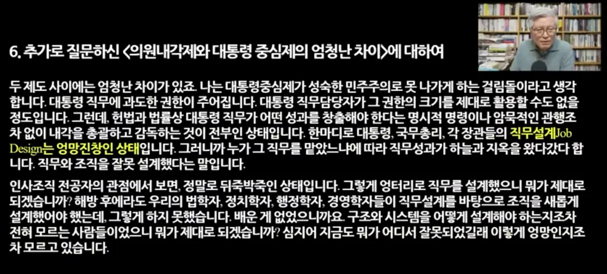 관료 지배 시 대통령은 앉아만 있고 당대표는 무능한 상황 발생.