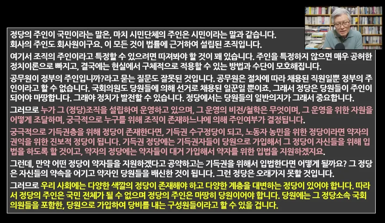 뒤에서 이야기 하겠지만 어느 정치학 교수가 정당의 주인은 누구인지 이야기 했다