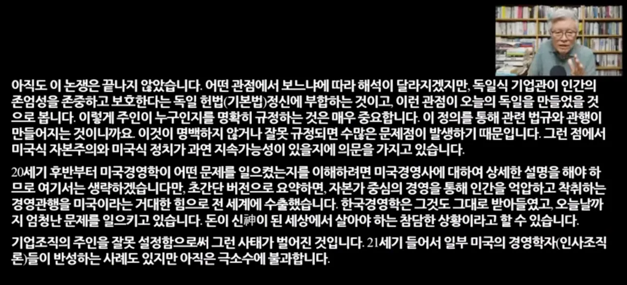 한국 경영학도 그것을 받아들여 많은 문제를 야기하고 있음.