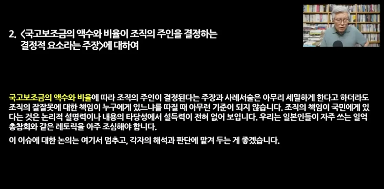 [국고보조금의 액수와 비율이 조직의 주인을 결정하는 결정적 요소라는 주장]에 대하여