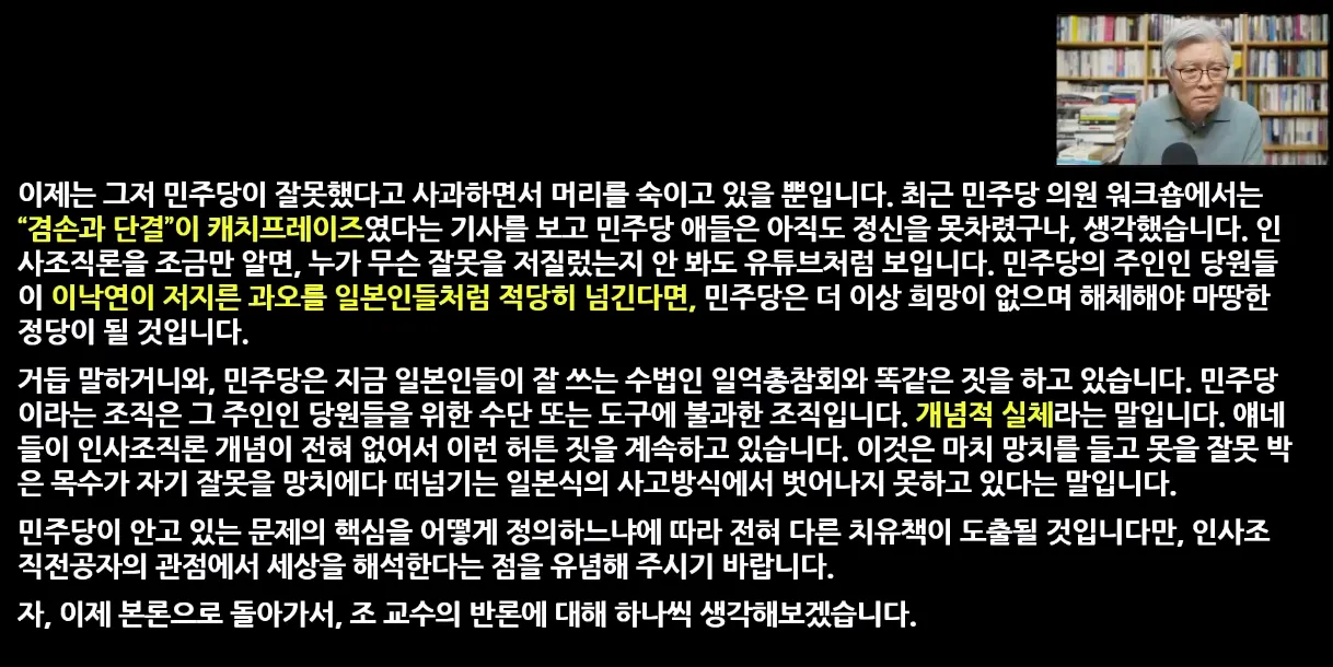 민주당의 문제를 어떻게 정의하느냐에 따라 다른 치유책이 나올 수 있으나, 인사조직 종공자의 관점에서 세상을 해석해야 한다.