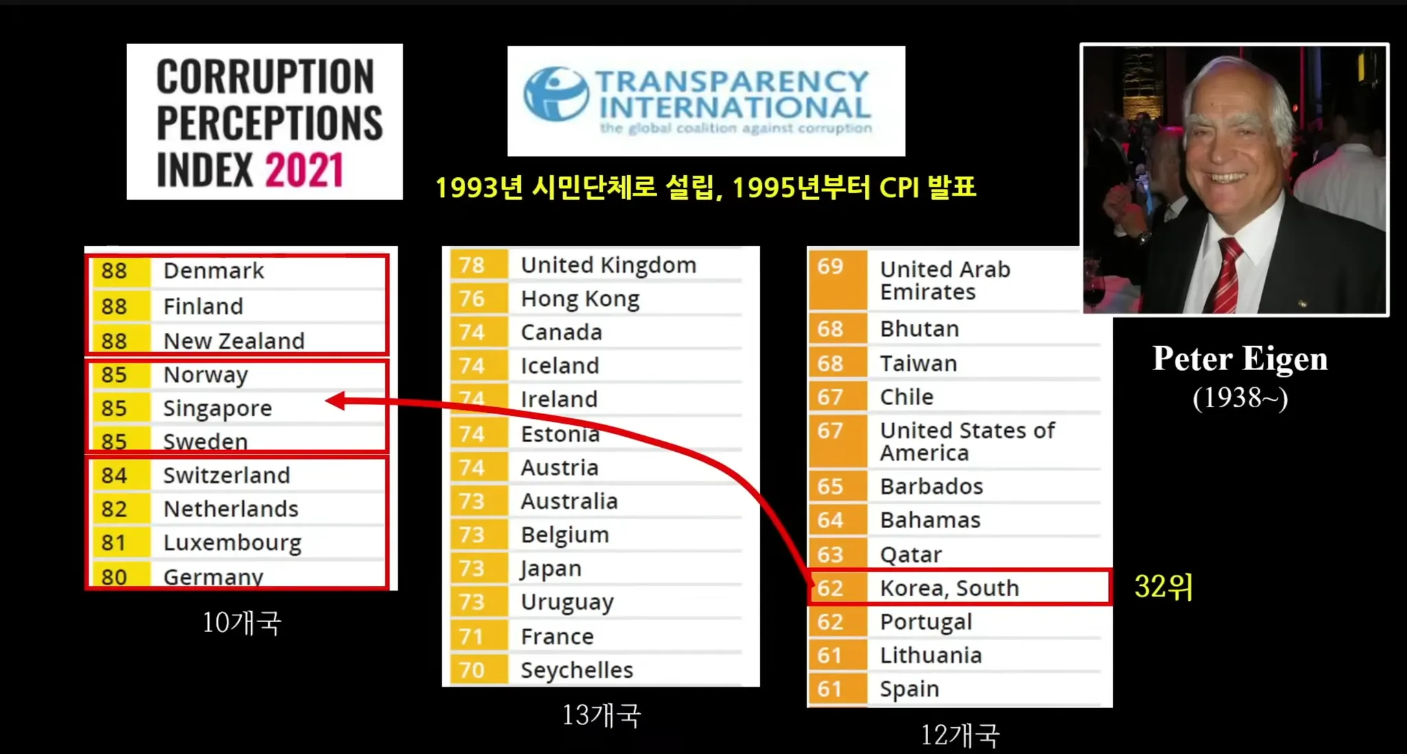 Transparency International은 매년 Corruption Perception Index를 발표하여 각 국가의 부정부패 정도를 평가한다.