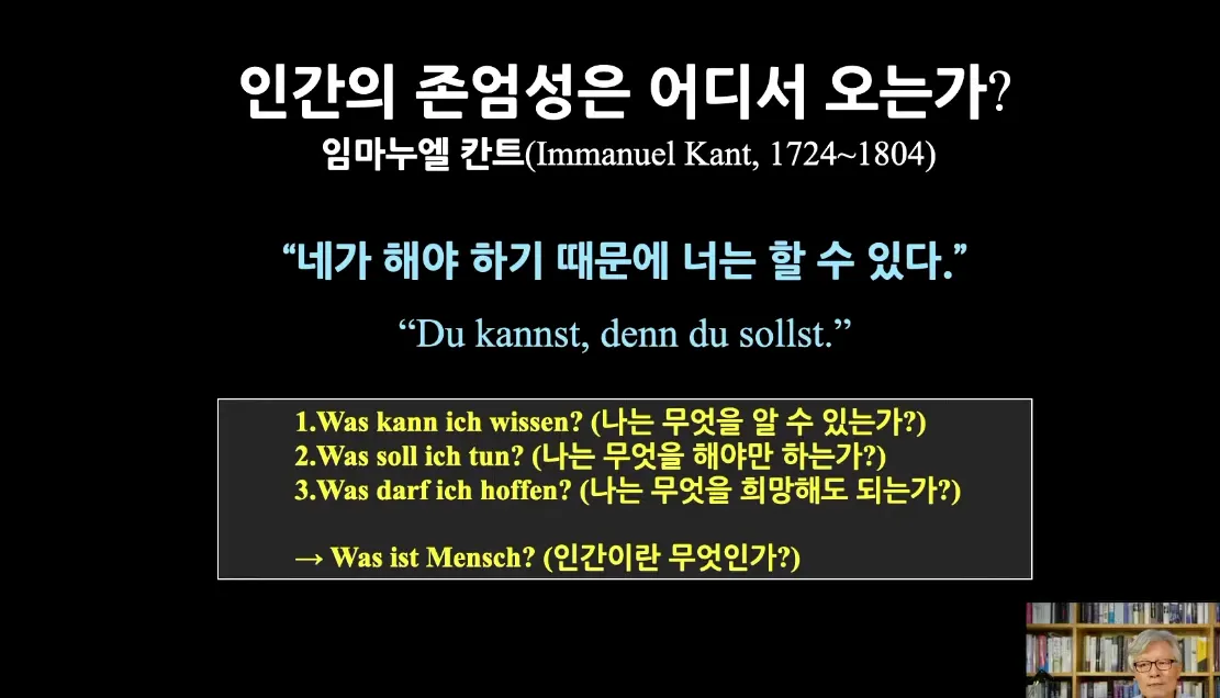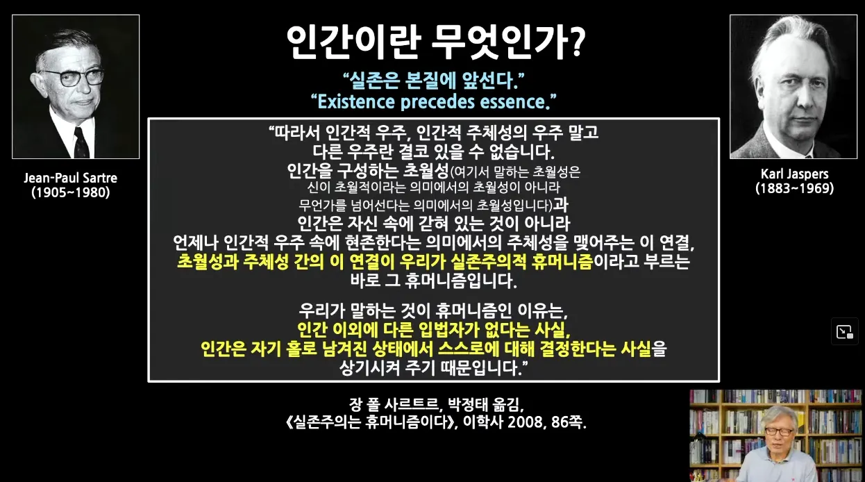 실존주의는 인간을 어떻게 보는지에 대한 내용이며 칸트의 견해와 유사