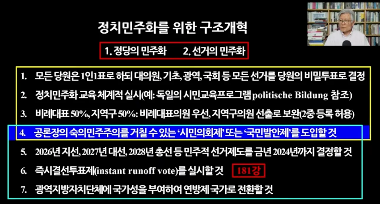 모든 선거 제도를 2024년, 늦어도 내년 여름까지 개편할 것.