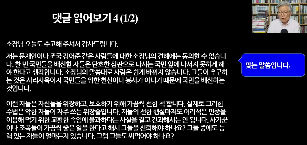 윤석열, 조국, 김어준, 문재인의 잘못에 대한 비판
