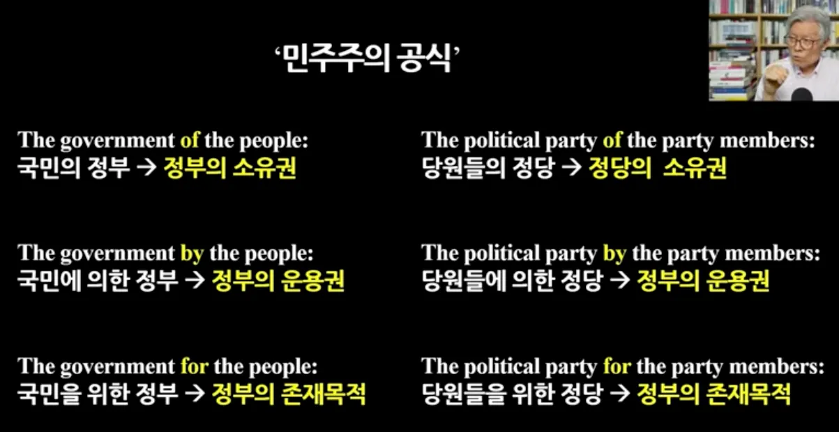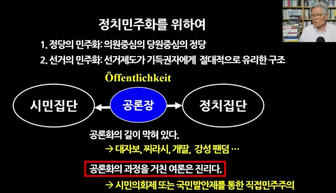 정치 민주화를 위해 당내 민주화와 선거 민주화가 필요함.