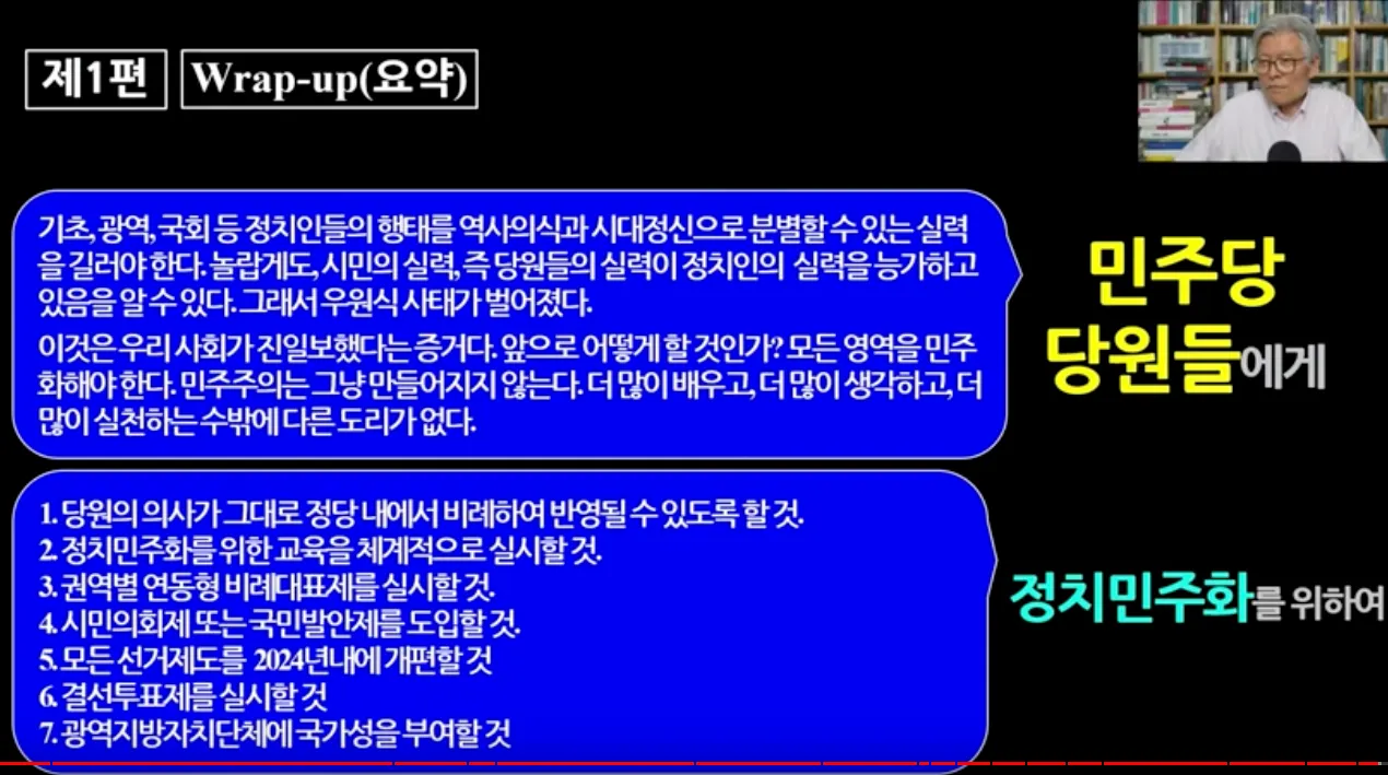 강의 내용: 민주당과 민주시민에게 전달하고 싶은 메시지